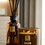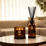 Golden warmth captured in our glass vessels. Bright citrus sparks at the top melt into the rich heart of rose, violet, and precious agarwood—an opulent bouquet wrapped in elegance. As it deepens, creamy sandalwood and glowing amber fuse with musk and patchouli, leaving a trail that is sweet, sensual, and steeped in luxury. Our Customers favourite.